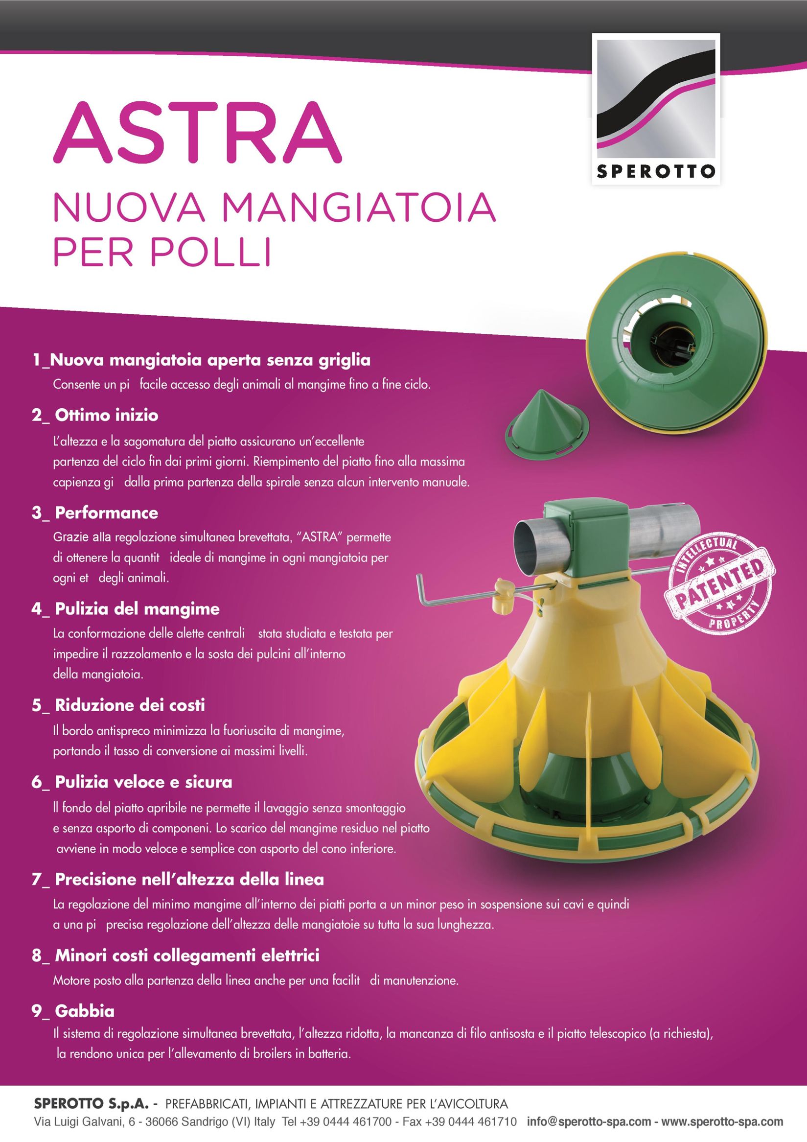 New entry nella famiglia di attrezzature per l'allevamento di broilers, "ASTRA" coniuga l'esclusivo sistema ad "alette" anti-intrusione all'ormai celebre regolazione centralizzata e simultanea del mangime "SPEROTTO".