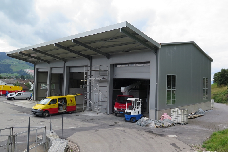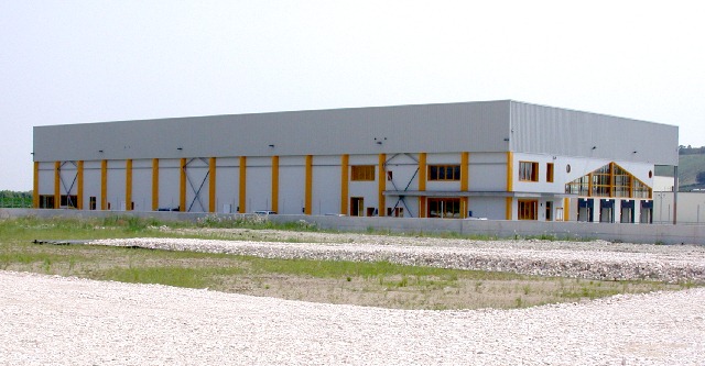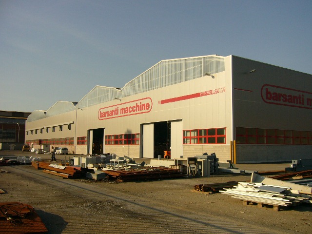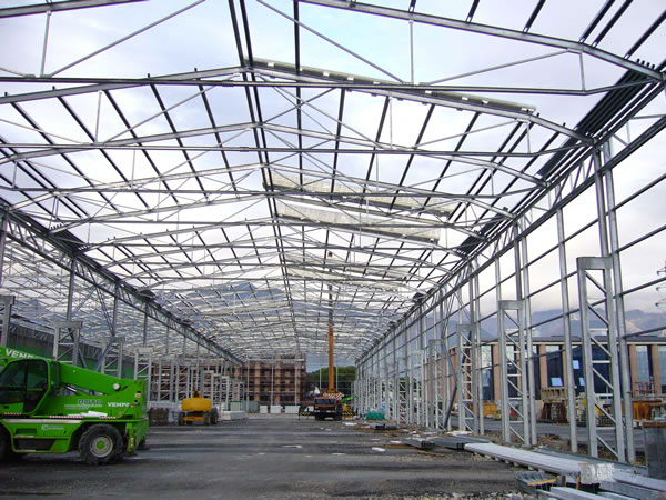 Si possono notare le tante strutture in acciaio prefabbricate in fase di costruzione e capannoni industriali finiti.