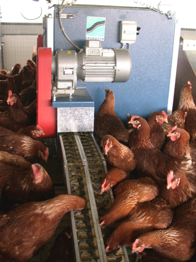 Новая система "плоская цепь" Sperotto особенно подходит для фермерства кур для размножения и яиценосных кур.