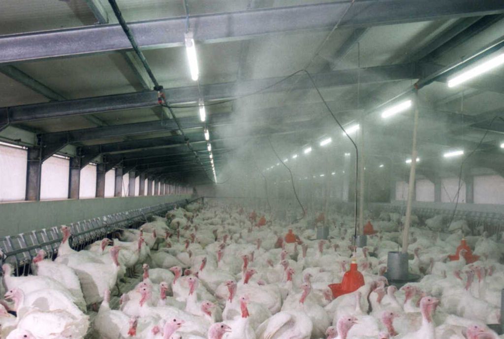 Когда температура снаружи высокая, и нормальная вентиляция не способна поддерживать оптимальную температуру внутри фермы, необходимо использовать системы охлаждения. Без них, результаты производства были бы плохими и стресс от чрезмерной жары может привести к нежелательной высокой смертностью животных.